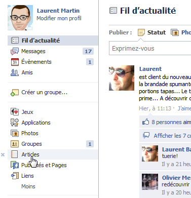 L’article est alors accessible via votre mur d’actualités, votre section Articles et apparaît dans le fil d’actualités de vos amis.